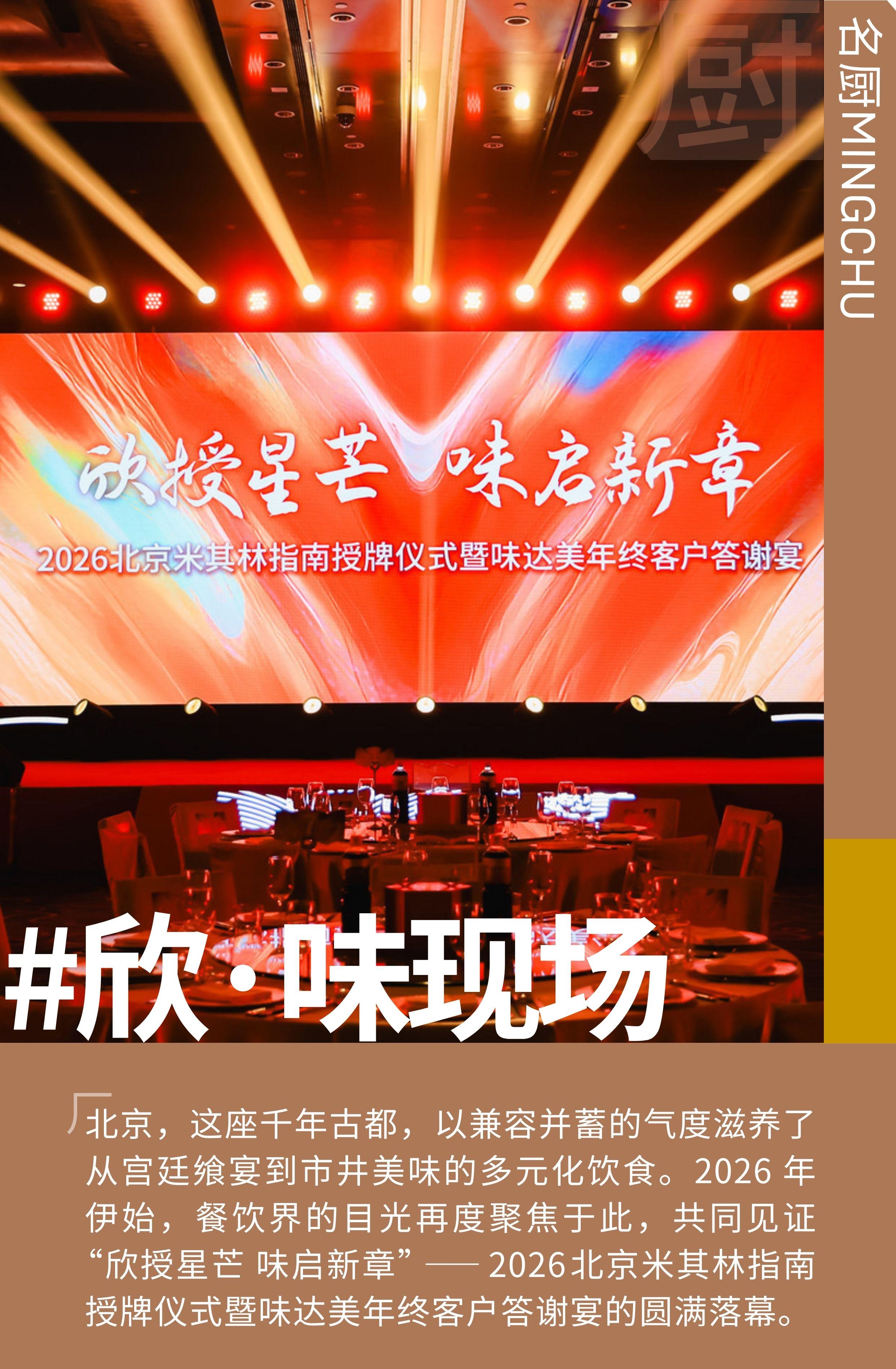1 月 21 日,备受瞩目的 2026 北京米其林指南授牌仪式于北京四季酒店举行。欣和集团作为 2025-2026 米其林指南中国大陆地区首席合作伙伴,获得独家授权;旗下专注餐饮行业与赋能厨师的味达美餐饮服务品牌为 2026 北京米其林指南获奖餐厅颁发奖牌。