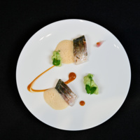 炙烤东山巴浪鱼 柚子普宁豆酱 酱油泡沫