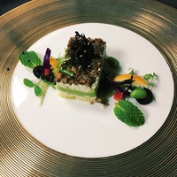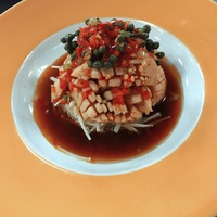 罗勒芝士酱焗鲈鱼佐泰酱咖喱甜玉米莎莎