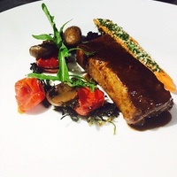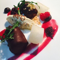 巧克力鹅肝配大葱慕斯和树莓酱