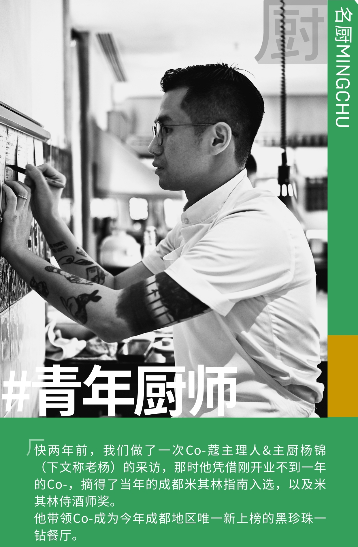 在新店众多,竞争众多的成都,Co- 成为该地区今年唯一一间新上榜的餐厅,是一种肯定。不过老杨始终保持着谦逊,稳定的心,他还有更多的料理梦想等待着实现。