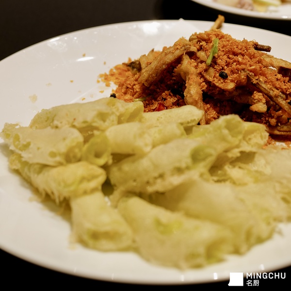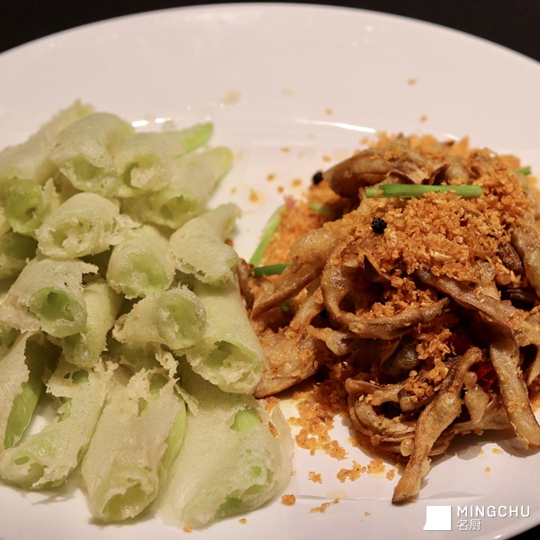 #新荣记 #台州 #主厨寻味之台州站 #小7探店 #荔枝菌 #避风塘时令限定的美味荔枝菌也被端上夏日餐桌,并佐以粤式避风塘的方法呈现,入口香酥,色泽诱人。与之搭配的白辣椒则裹上更为轻薄的面衣,佐以日式天妇罗的手法,体现出蓬松感与轻盈感。
