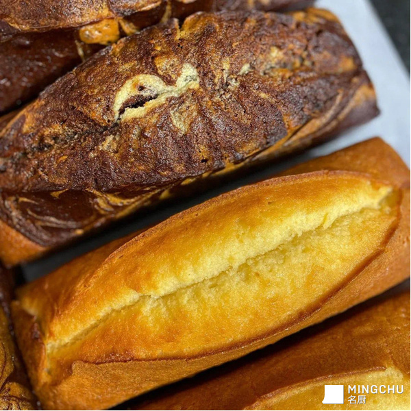 4、在每个涂油铺烘焙纸的模具内倒入850克,入烤箱以150℃烘烤约60分钟。