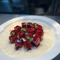 然后把龙虾入锅倒入调好的汁 翻炒均匀 葱白 洋葱撒进去翻炒 最后淋入适量葱油出锅