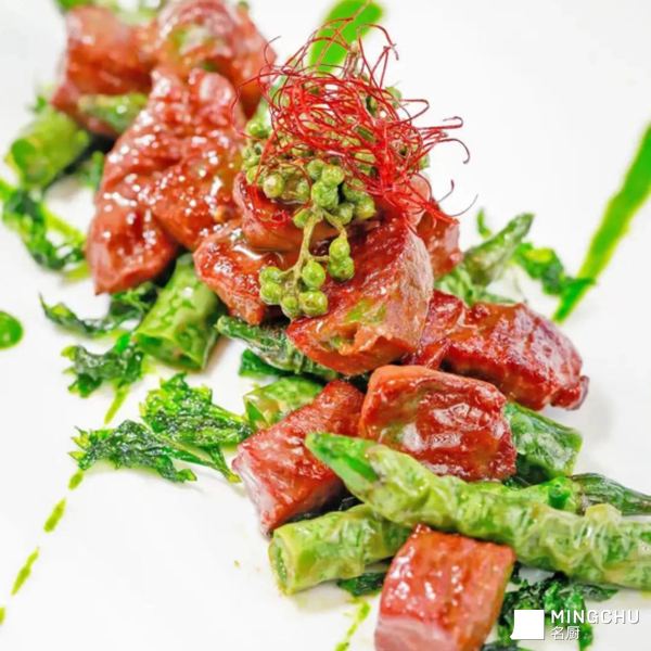 让眼肉和中餐的辣椒碰撞在一起,激发了不一样的变化,让牛肉加上辣椒的辣、香甜、清香,更能激发出牛肉香味,再加上花椒油,在口腔里爆发出美妙的味道
