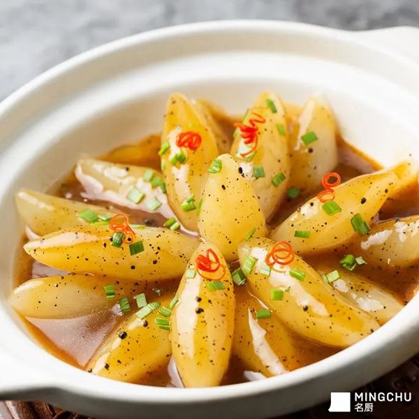 用鸡汤炖煮,增加了萝卜的香味;加入黑松露酱,让菌类的香味充分融合包裹住软糯的萝卜,香味和口感都更胜一筹。