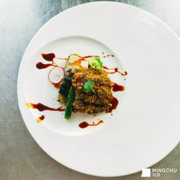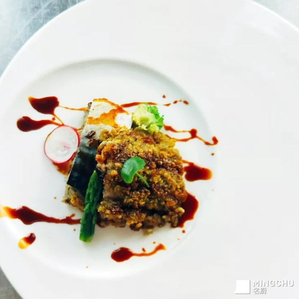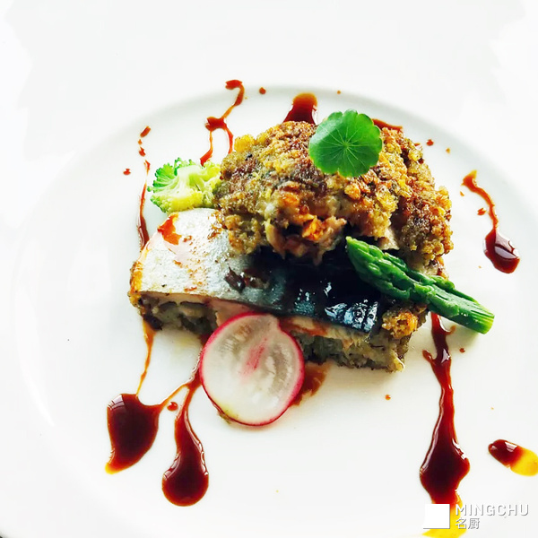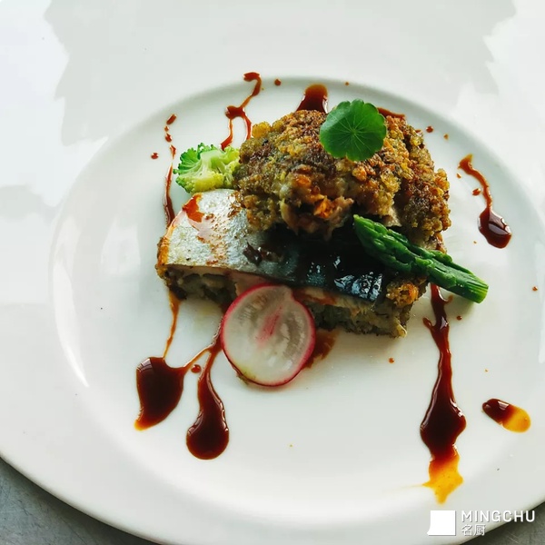 香草外壳的清香酥脆搭配上鱼肉的细嫩,让菜品口感对比极佳