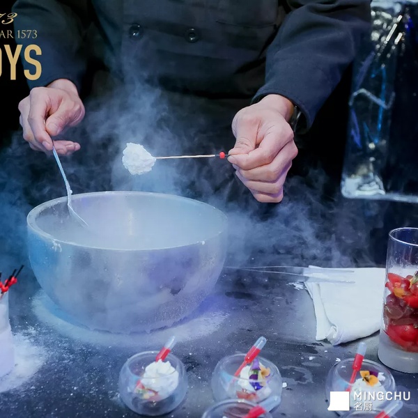 一道创意的液氮冰淇淋,一口下去烟雾缭绕,酒香、奶香融为一体。