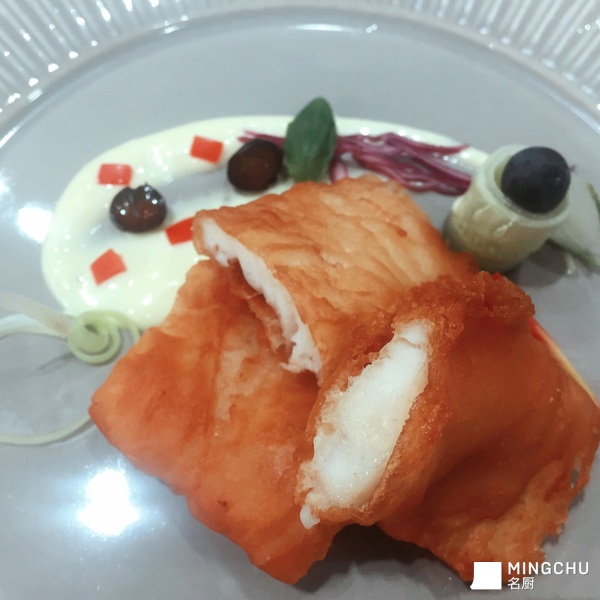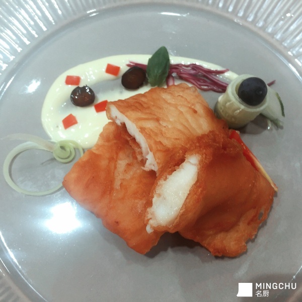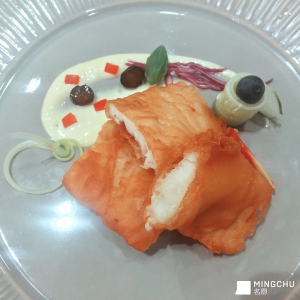 啤酒糊炸鱼柳配蜂蜜芥末酱