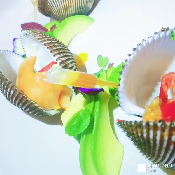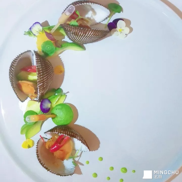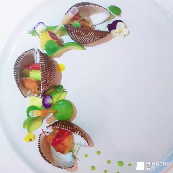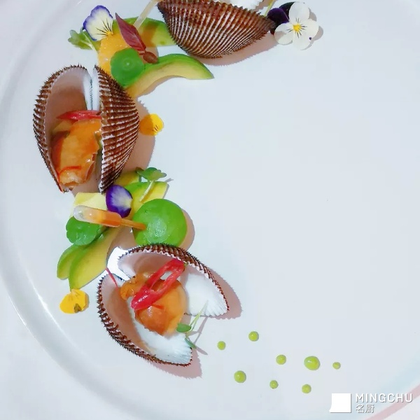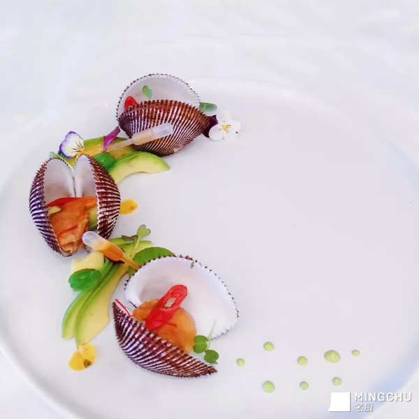香草白酒赤贝配牛油果 藏红花蛤蜊汁
