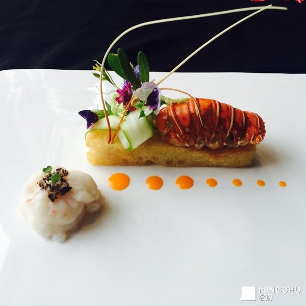 这是一虾两吃的做法。现杀的龙虾需要放尿,让虾腹朝下,再扳起尾部,用一只筷子从近尾叶的底端插入其体内,再抽出筷子,龙虾会排出一道有异味的液体。如不放尿,在烹饪过程中会影响味道。除此之外,还要剔去它的虾线,这是藏污纳垢部分,所以需要去除。