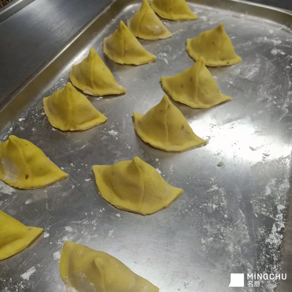炸咖喱角油温是关键,小火慢油温泡着炸。