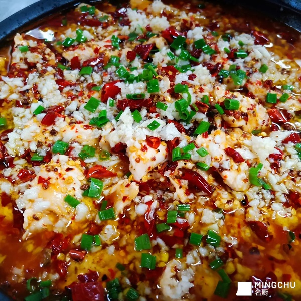 水煮肉片的刀口辣椒最好是现用现做,它是整道菜的灵魂来源,在刀口辣椒上放蒜蓉会防止淋热油时油温过高导致烧糊刀口辣椒,切记