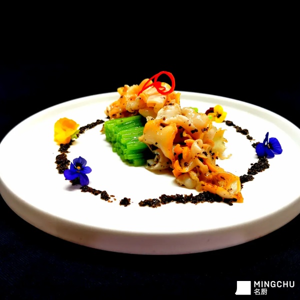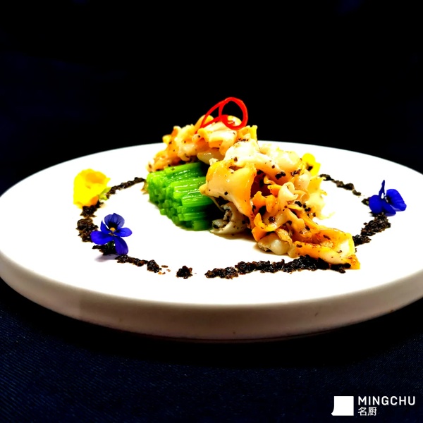 黑松露的菌香裹着脆爽的螺片,伴随翠绿的茼蒿梗,营养更加丰富,口感清脆到底
