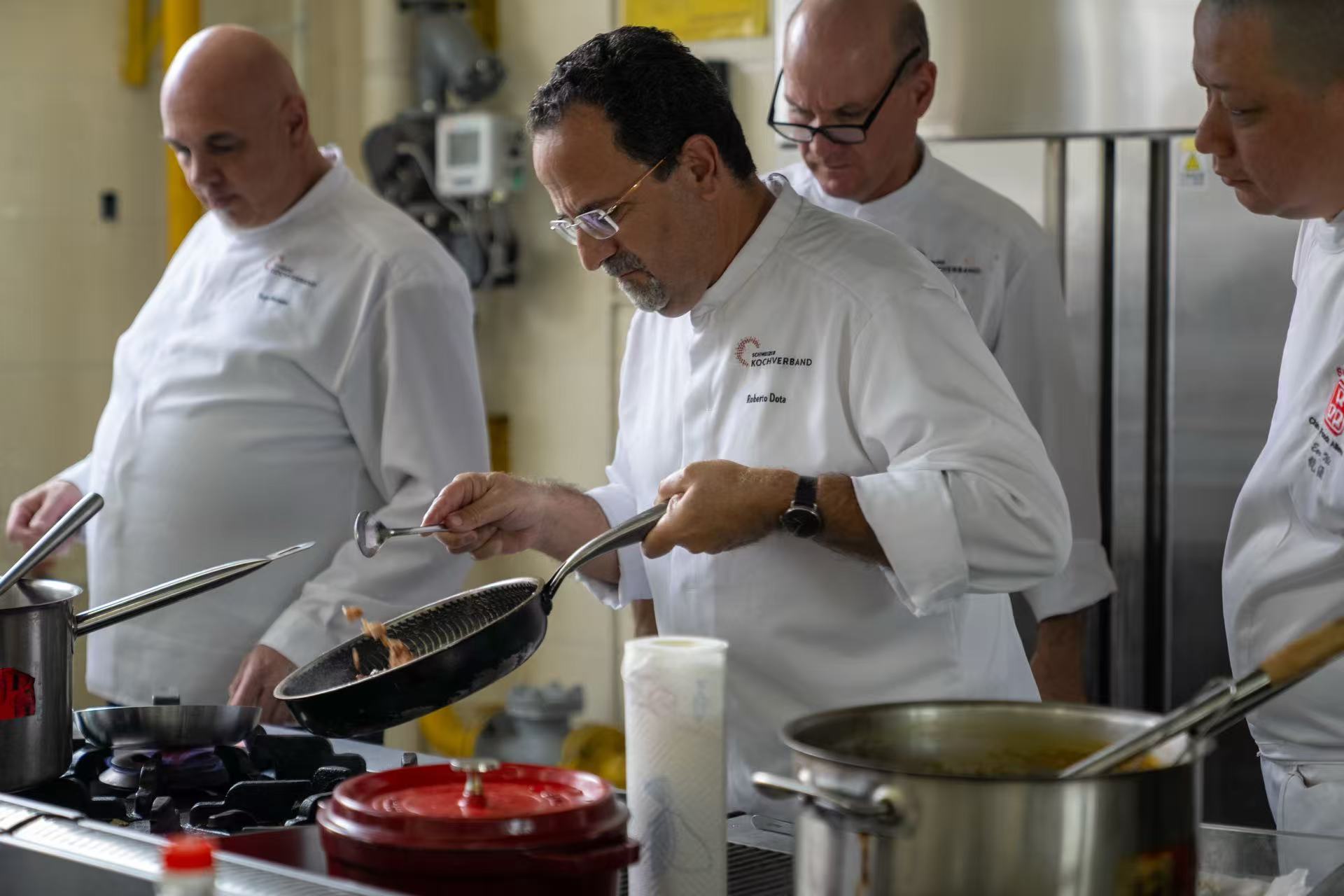 炒菜机器人的展示现场,工作人员只需按下启动键,把配置好的菜料放入机器人的托盘中,机器人便按照事先设置的程序完成投料、滑油、翻锅、火候控制等厨艺全过程。
