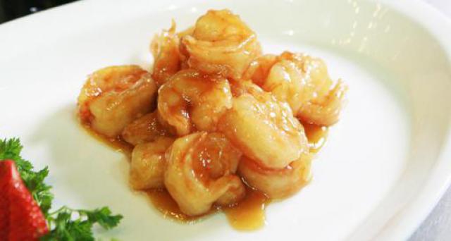 赵光有亲自现场烹饪“宫廷抓炒大虾”。摆盘饰→吸干虾水分→兑碗汁→上糊→炸→炒→出锅,这一系列动作纯熟于心,步步到位,色香味俱佳的“宫廷抓炒大虾”太诱人了!